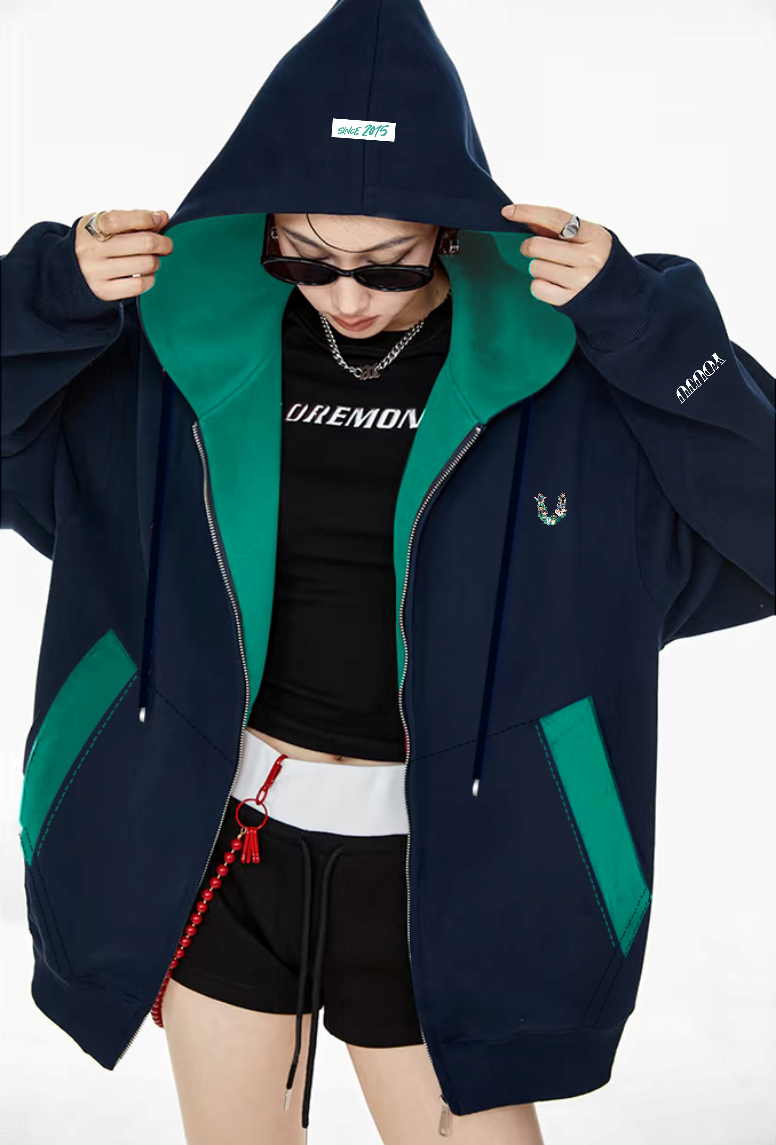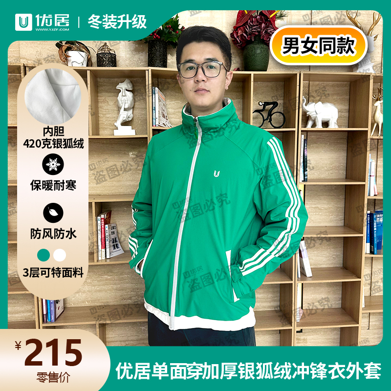 优居单面穿加厚银狐绒冲锋衣外套 男女同款冬季厚款立领条纹宽松保暖服